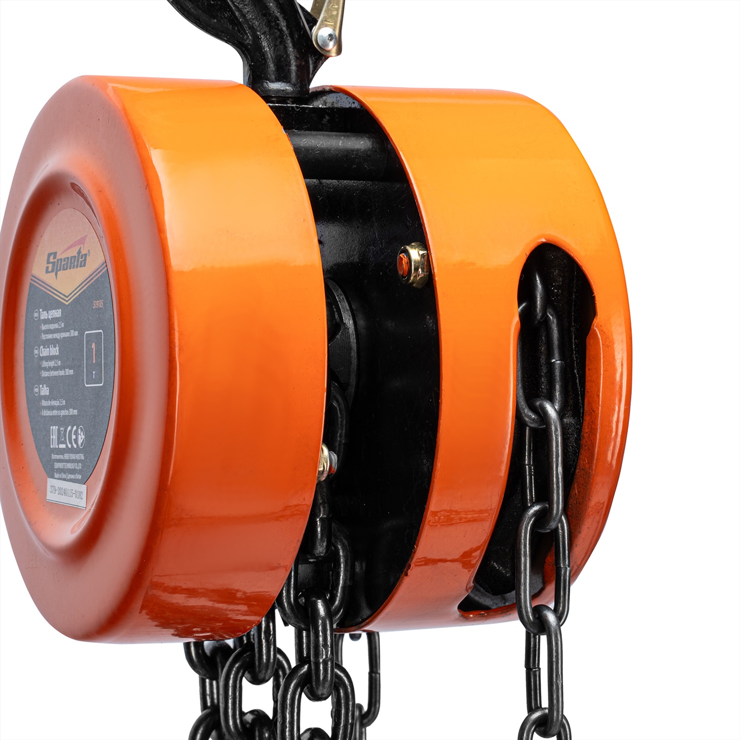 Цепная таль Sparta 519135 с расстоянием между крюками 300 мм предназначена для подъема грузов весом не более 1 т на высоту до 2,5 м. При этом пользователь стоит внизу, а шестеренный механизм передает усилие на цепь. С помощью тали можно поднимать тяжести на производстве, в автосервисе, на строительной площадке и т.д.