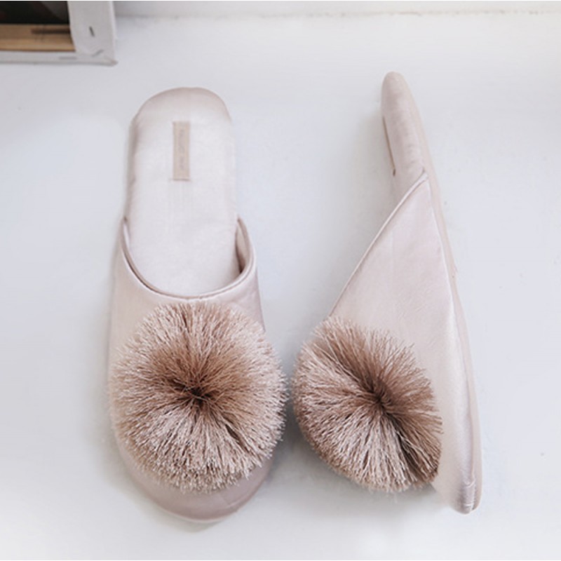 Простые и симпатичные текстильные тапочки с пушистым помпончиком сверху выполнены в спокойном бежевом цвете. Приятная округлая форма, легкая подошва, ровные аккуратные швы располагают к себе и привлекают внимание к данному изделию. Хороший вариант для домашней обуви, которая подойдет ко всему!