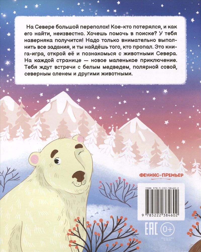 На Севере большой переполох! Кое-кто потерялся, и как его найти, неизвестно. Хочешь помочь в поиске? У тебя наверняка получится! Надо только внимательно выполнить все задания, и ты найдёшь того, кто пропал. Это книга-игра, открой её и познакомься с животными Севера. На каждой странице - новое маленькое приключение. Тебя ждут встречи с белым медведем, полярной совой, северным оленем и другими животными. тираж 5000, для детей : 0+ [иллюстратор: Мария Буробкина] 2024 г.