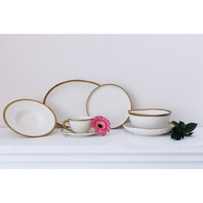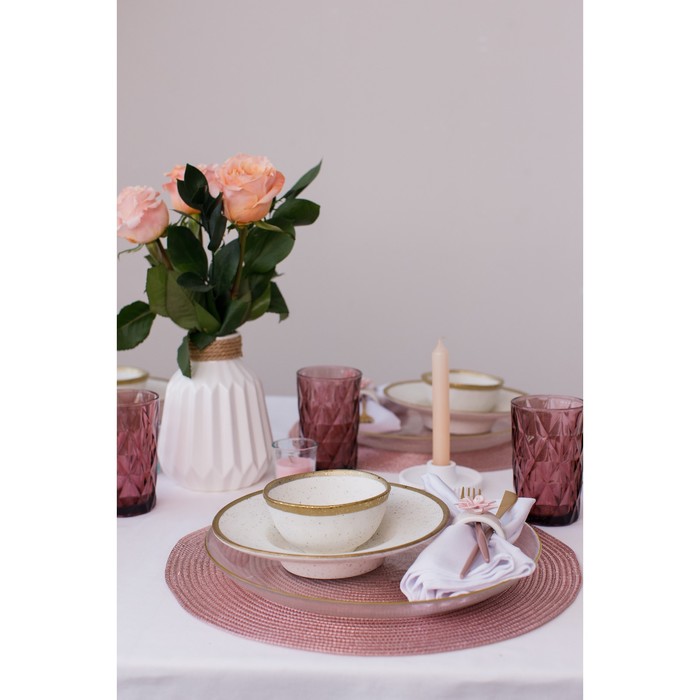 Габариты: 19,5 x 19,5 x 7 Страна: Китай В боксе: 16 шт Состав: Фарфор Материалы: фарфор Фасовка: по 1 шт Индивидуальная упаковка: Без упаковки Габариты товара: 19,5 см × 19,5 см × 7,2 см Сертификат: СТР Набор: Нет Цвет: Бежевый Диаметр, см: 19,5 В наборе, шт.: 1 Объём, мл: 330 Тематика: Полоски, полоса Рисунок: Да Материал: Фарфор Вид тарелки: Глубокая Можно мыть в посудомоечной машине: Нет Можно использовать в СВЧ-печи: Нет Текстура: Гладкая Особенности: С золотой отводкой Матовая поверхность: Да Для горячего: Да Посуда серии Magistro Poursephona — это современная фарфоровая посуда. В оформлении серии превалируют два цвета – бежевый оттенок фарфора и роскошное золото в виде широкой окантовки предметов. Идеально подходит как для формального обеда, так и для торжеств по особым случаям. Лаконичные формы, золотая окантовка, разноцветные вкрапления придают изделиям из фарфора одновременно необычный и современный вид. Уход: Нельзя использовать в микроволновой печи. Не рекомендуется мыть в посудомоечной машине. ДополнительноМатовая поверхность посуды с золотой отводкой требует деликатного обращения. Нельзя использовать агрессивные чистящие средства и абразивные губки, а также скоблить металлическими приборами по изделию во избежание порчи покрытия. Комментарии к товару