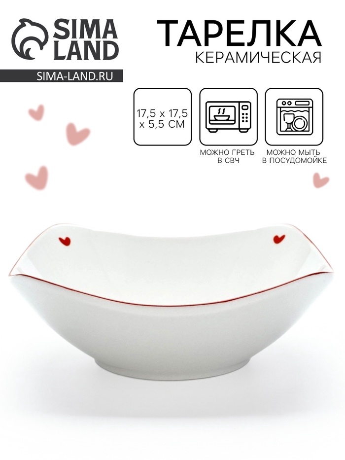 Габариты: 18 x 18 x 7 Страна: Китай В боксе: 24 шт Фасовка: по 1 шт Индивидуальная упаковка: коробка Габариты товара: 17,5 см × 17,5 см × 5,5 см Сертификат: СТР Набор: Нет Цвет: Белый Диаметр, см: 17,5 В наборе, шт.: 1 Тематика: Любовь Рисунок: Да Материал: Керамика Вид тарелки: Глубокая Можно мыть в посудомоечной машине: Да Можно использовать в СВЧ-печи: Да Текстура: Гладкая Особенности: Ручная работа Матовая поверхность: Нет Для горячего: Да Комментарии к товару