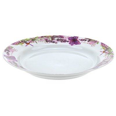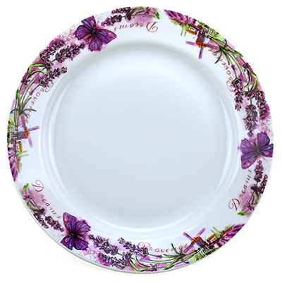 Тарелка мелкая фарфоровая "Прованс" д240мм, h35мм, гладкий край, круговая деколь (Россия)