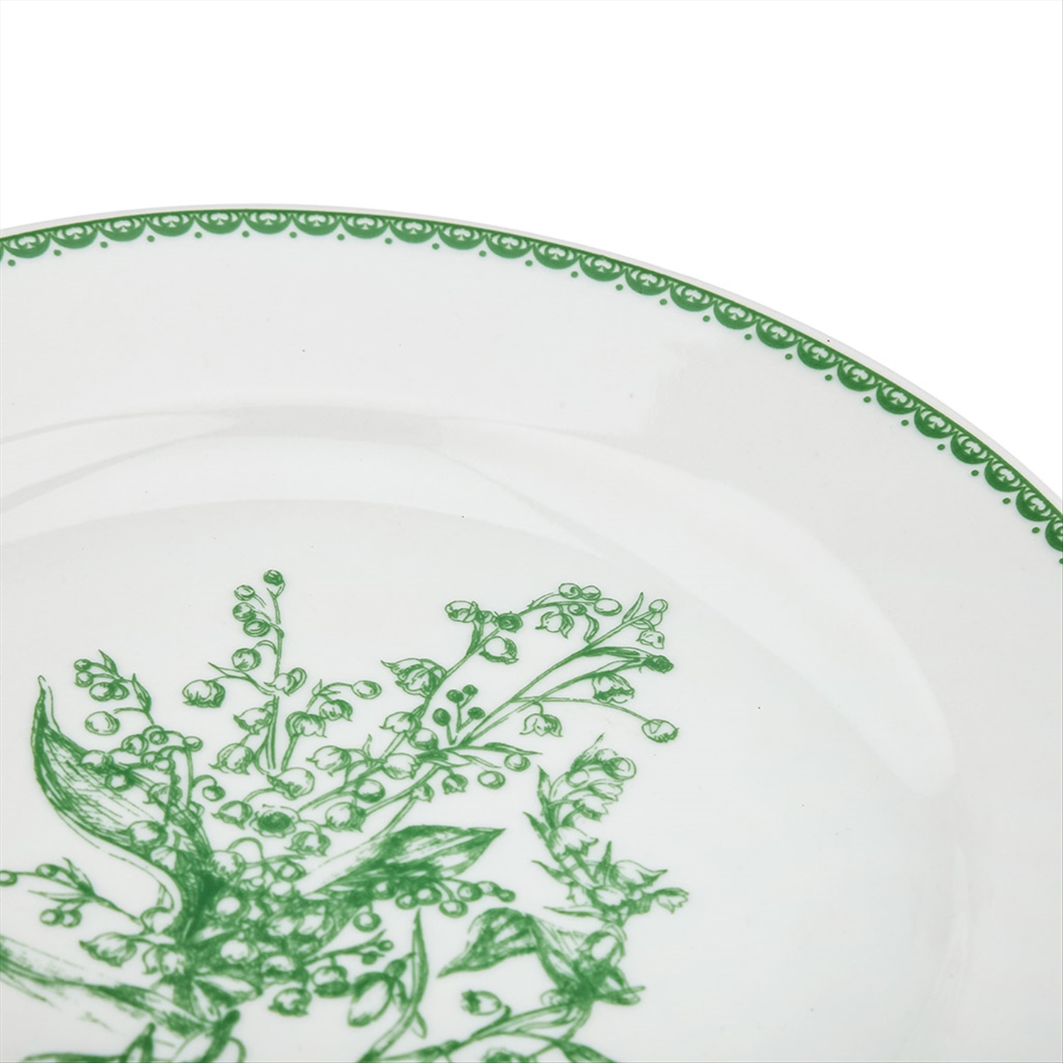 Тарелка мелкая фарфоровая "Райские ландыши" д175мм, h25мм, гладкий край, изумруд (Россия)
