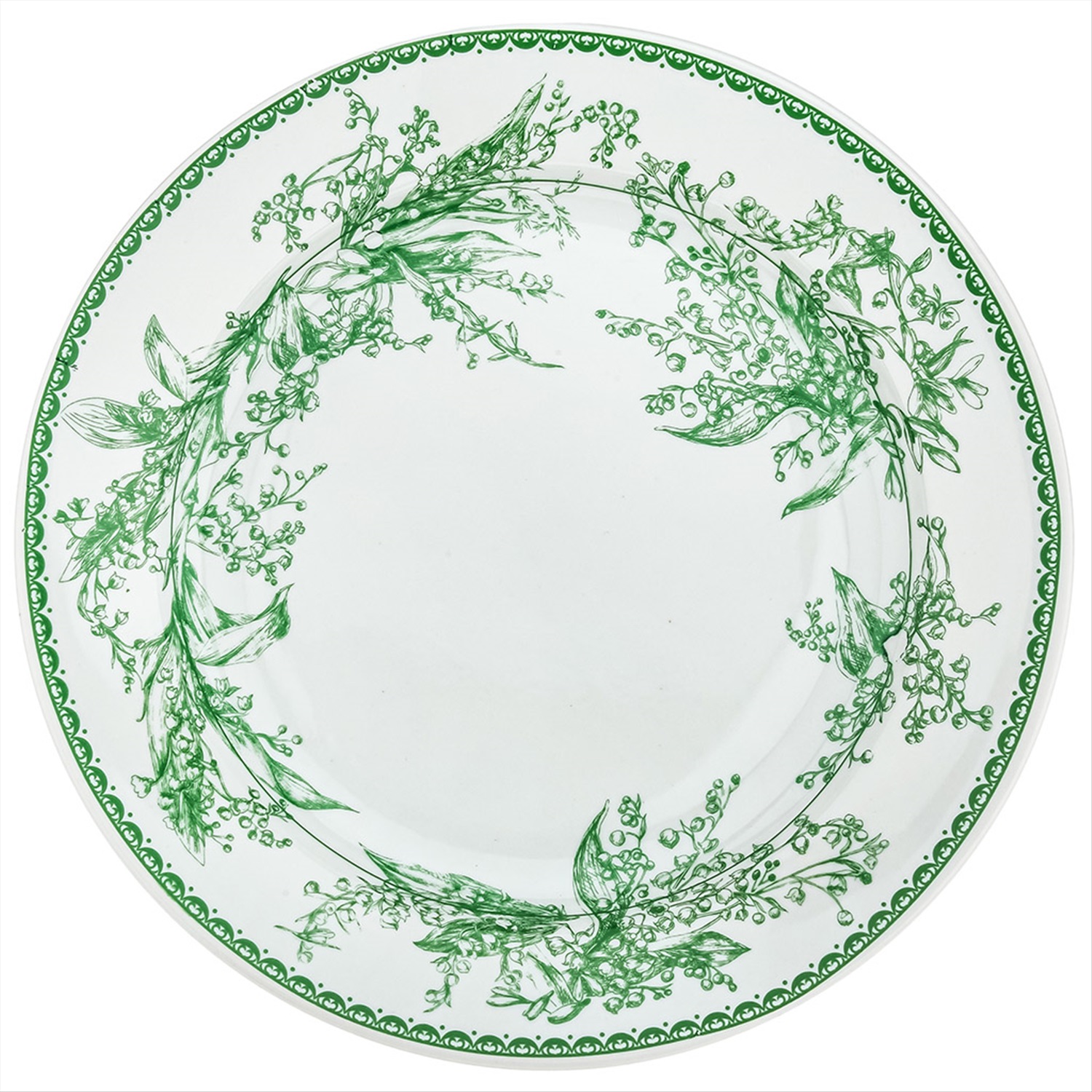 Тарелка мелкая фарфоровая "Райские ландыши" д240мм, h35мм, гладкий край, изумруд (Россия)