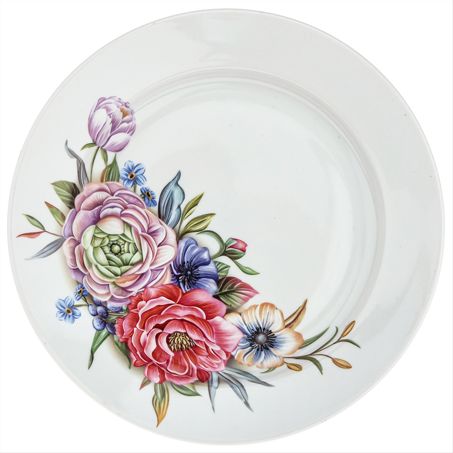 Тарелка мелкая фарфоровая "Розы 3D" д240мм, h35мм, гладкий край (Россия)