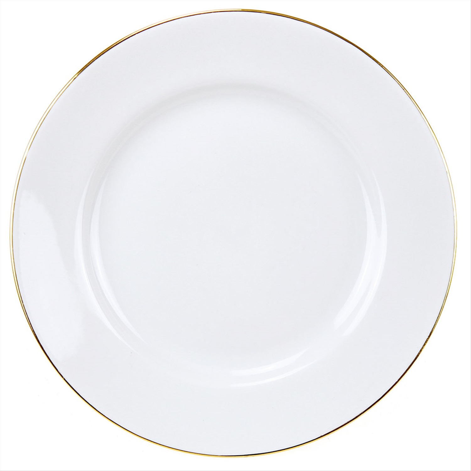 Тарелка мелкая фарфоровая "Золотой борт" д200мм, h25мм, белье, отводка золотом, гладкий край (Россия)