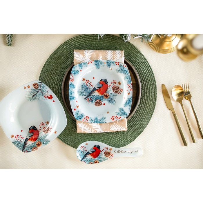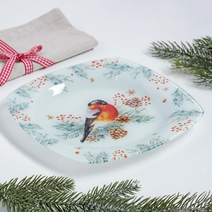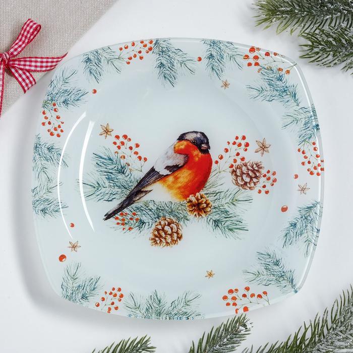 Тарелка плоская новогодняя «Снегирь», 20×20 см