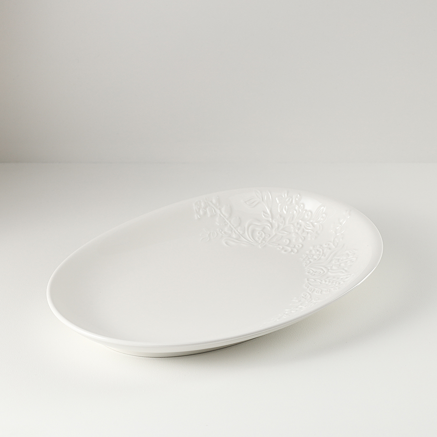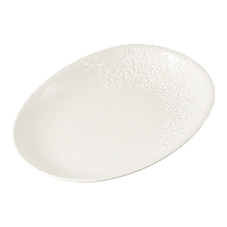 Бренд: Liberty Jones Коллекция: English gardens Название товара: Тарелка сервировочная English Gardens Артикул: LJ0000432 Материал: фарфор Цвет: белый Вес: 981 гр Размеры в упаковке (ШхГхВ): 22,5 х 30,2 х 6,7 см Размеры без упаковки (ШхГхВ): 30 х 22 х 4,5 см