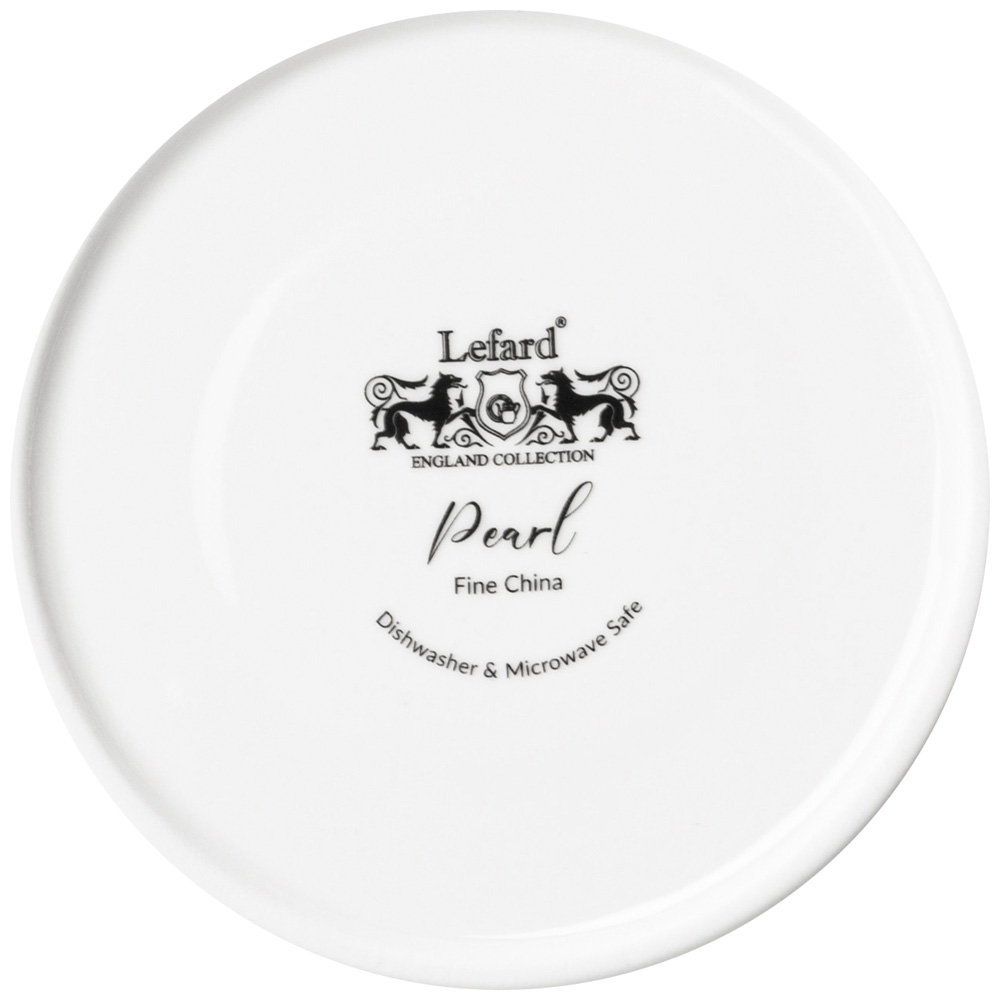 ТМ LEFARD коллекция "PEARL - ЖЕМЧУЖИНА" - трендовая, белоснежная, с оригинальным рельефом по краю в виде горошин, базовая для любой сервировки, выпонена из фарфора Fine China, более простого и дешёвого нового материала, где в составе имеется искусственный минерал, который улучшает характеристики фарфора, делая его прочнее, тоньше и легче. Себестоимость получается ниже, а по прочности и внешнему виду он зарекомендовал себя с лучшей стороны и завоевал доверие покупателей. Удобные формы и размеры. Прекрасно сочетается с любой декорированной посудой. Ваш стол неотразим! Можно мыть в посудомоечной машине, использовать в микроволновой печи.