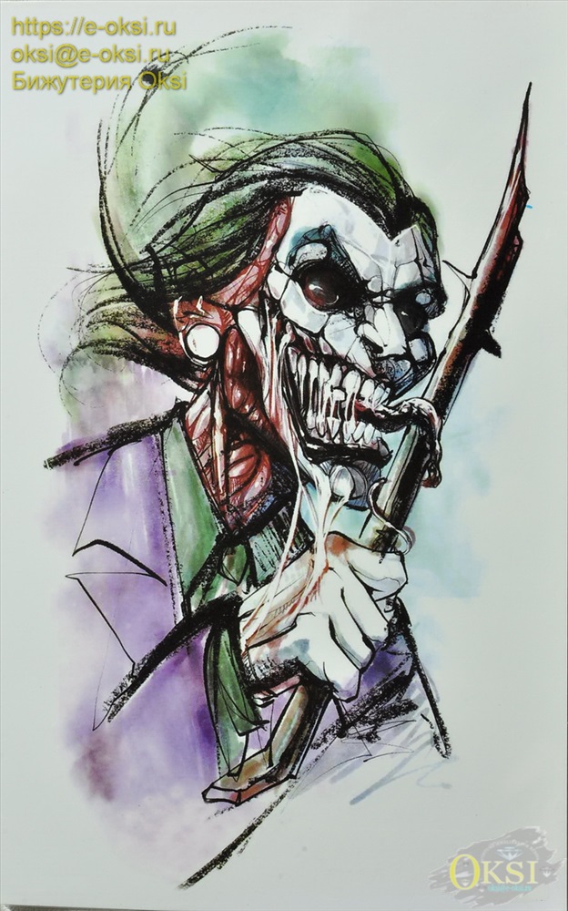 Переводная, временная татуировка с Джокером, размер листа 12*19 см