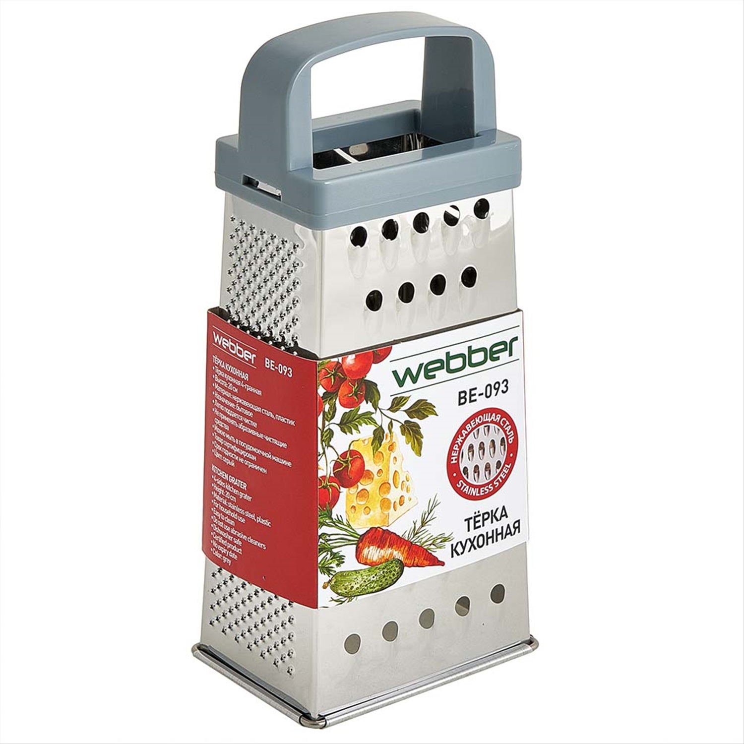 Производитель: Бренд Webber; Аксай: много; Москва: много Параметры * Высота 20 см Описание * Тёрка кухонная четырехгранная * Материал: нержавеющая сталь, пластик * Цвет ручки: серый * Легко поддаётся чистке * Можно мыть в посудомоечной машине