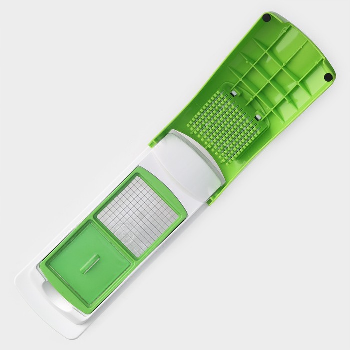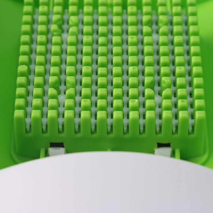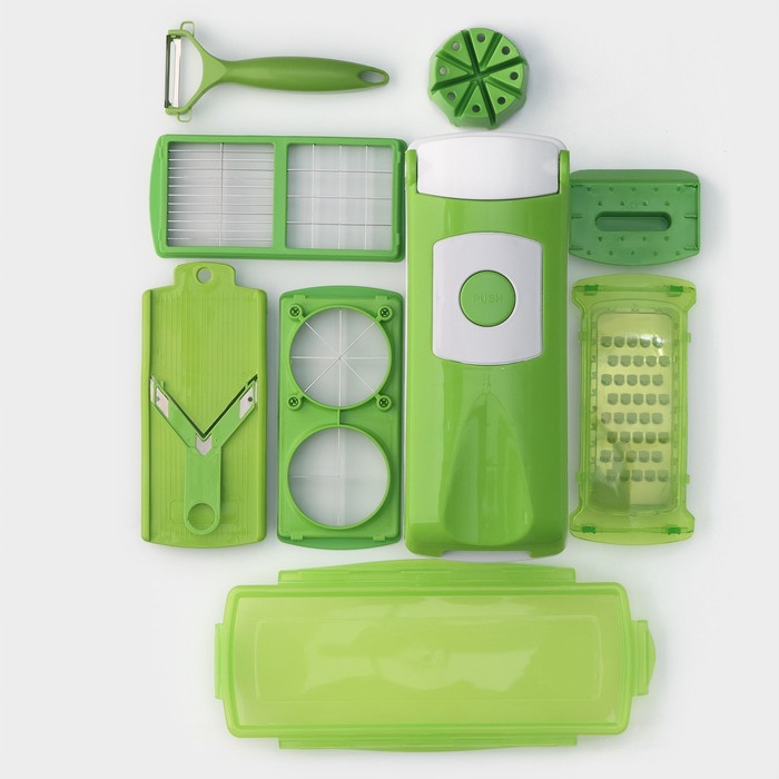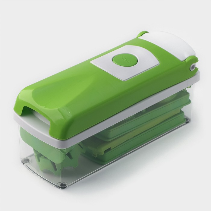Экономьте свои время и силы: специальные лезвия помогут быстро накрошить салат из овощей, фрукты для торта и многое другое. Овощерезка универсальная Доляна «Фреш Флеш», 7 насадок, овощечистка, мерный контейнер, 27×10×12 см, зелёная, белая быстро и безопасно мыть. Благодаря особой конструкции частички пищи не застревают и спокойно вымываются струёй тёплой воды.