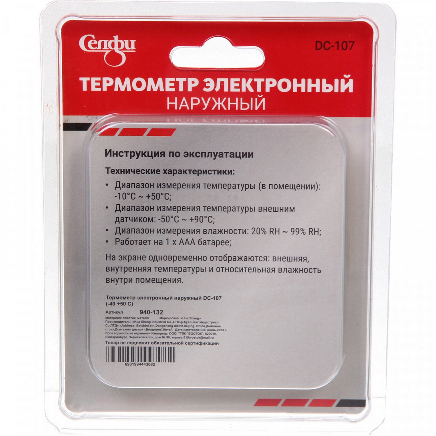 Термометр электронный наружный DC-107 (-40 +50 С),показывает относительную влажность воздуха и температуру в помещении.