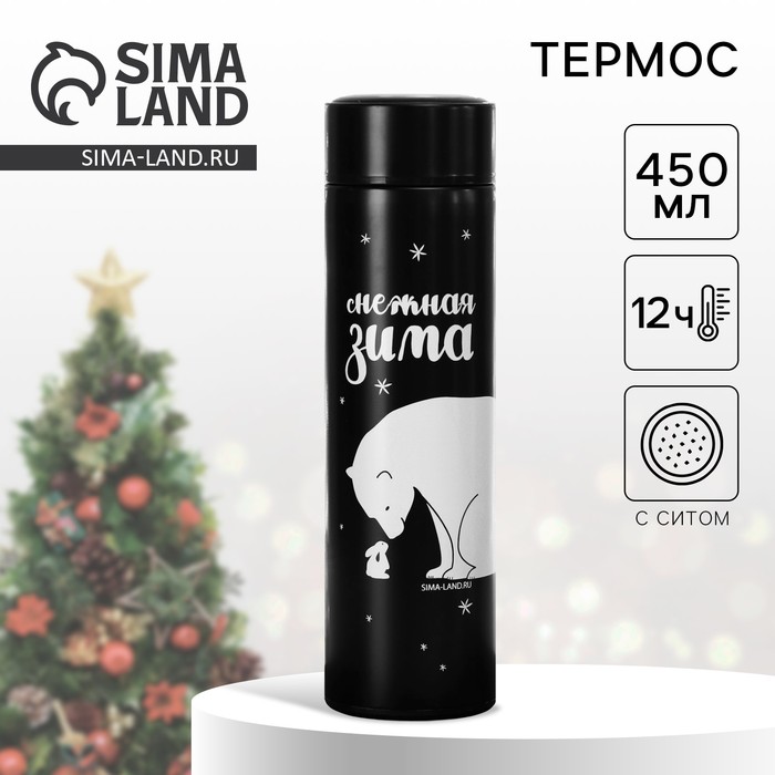 Термос «Снежная зима» объёмом 450 мл — идеальный подарок для любителей зимних развлечений и активного отдыха.