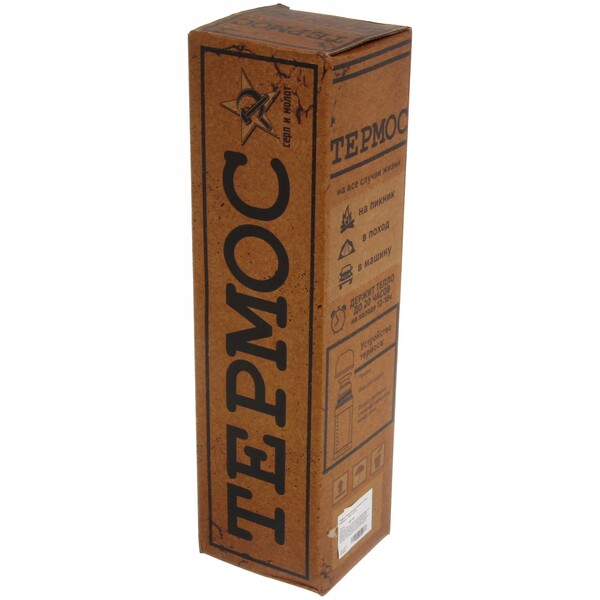 Бренд: Серп и Молот; Бренд: Серп и молот; Индивидуальная упаковка: Картонная коробка; Материал: Металл; ШтрихКод: 2410000012084; Страна происхождения: Китай; Количество в коробке: 30; Материал колбы: Металл; Материал корпуса: Металл; Цвет: Серебро; Объем (мл): 1000; Время сохранение тепла/холода(ч): 12