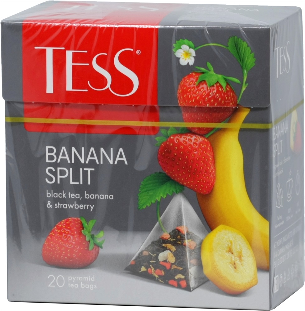 Чай черный байховый листовой в пирамидках с натуральными растительными добавками.Banana Split — калейдоскоп ошеломляющих впечатлений. Вкус черного чая дополняет гармоничное сочетание сладкого банана и сочной клубники.В составе: чай черный байховый, ароматизатор «клубнично-банановый коктейль», клубника, банан, лепестки календулы, лепестки подсолнечника