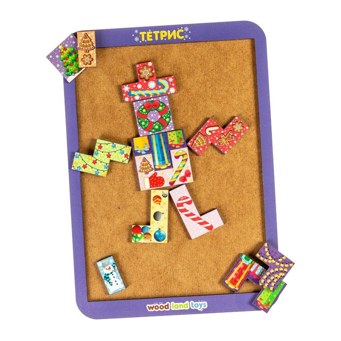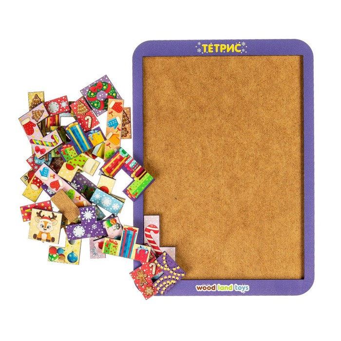Производитель: WoodLand Toys; Габариты: 27,5 x 19,5 x 0,6; Страна: Россия; В боксе: 90 шт; Состав: Дерево; Материалы: дерево; Фасовка: по 1 шт; Индивидуальная упаковка: Термоусадочная пленка; Сертификат: ЕАС; Для кого: Унисекс; Возраст: От 3 лет; Количество элементов: 40; Тематика: Детская, Новогодняя; Символ года: Нет; Тематика праздника: Новый год; Материал: Дерево; Жанр игры: Развивающая, Головоломки и логические; Развитие навыков: Внимание, Мышление, Логика, Моторика; Сложность головоломки: 4; Фиксированная цена: Да Деревянный тетрис «Новогоднее волшебство» — это увлекательная игра для детей от 3 лет, которая перенесёт малышей в атмосферу главного зимнего праздника. Этот набор из 40 элементов создан для весёлого и полезного досуга. Собирая детали, ребёнок развивает важные навыки и получает удовольствие от игры. Особенности * Все элементы выполнены из дерева, что делает их безопасными и долговечными. * Каждая деталь имеет уникальную форму, что добавляет игре глубины и интереса. * Яркие новогодние мотивы и тематические рисунки привлекают внимание и создают праздничное настроение. * Простая конструкция без лишних особенностей помогает сосредоточиться на процессе игры. Играем с пользой Эта игра не просто развлекает, но и помогает развивать важные навыки. Работая с деталями, ребёнок учится находить решения, концентрироваться на задачах и радоваться результату. Это отличный способ совместить отдых с обучением. Польза от игры в тетрис * Развитие логического мышления и стратегического планирования. * Тренировка внимания и зрительного восприятия. * Улучшение мелкой моторики и координации движений. * Формирование усидчивости и терпения при выполнении задачи. Как играть? 1. «Собери картинку». Предложите ребёнку расположить детали так, чтобы они образовали цельное изображение. Это развивает логическое мышление и внимательность. 2. «Создай свой узор». Попросите малыша придумать собственный рисунок или узор из элементов. Это стимулирует творческое мышление. 3. «Поиграй с друзьями». Используйте элементы для совместной игры, где участники по очереди добавляют детали. Это учит взаимодействию и стратегическому планированию. Идея для подарка Тетрис «Новогоднее волшебство» станет отличным подарком для детей, которые любят игры и творчество. Он подходит как для домашнего использования, так и для занятий в детских садах. Подарите возможность совместить обучение и веселье, создавая яркие и запоминающиеся моменты! Дополнительно Размер рамки-основания — 19.5 × 27.5 см.