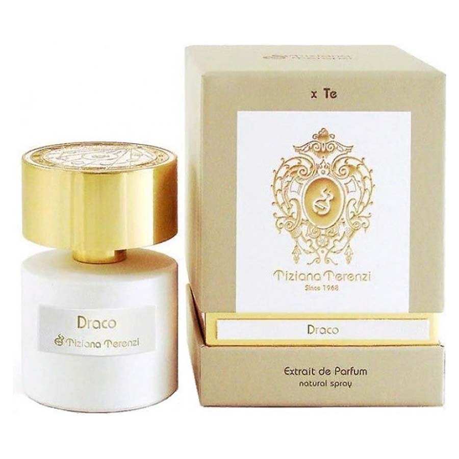 Истинный творец прекрасных ароматов Паоло Терензи из семьи известных парфюмеров в 2015 году создал утонченный парфюм Tiziana Terenzi Draco. Композиция этого феерического Дракона окружает освежающим облаком с фруктово-древесными переливами и уникально подходит всем – женщинам и мужчинам любого возраста. Терензи является приверженцем натуральных ингредиентов, что выразилось в продуманном сочетании ароматов персика, лимона, апельсина, жасмина, бергамота, кедра. Бобы тонка придают аромату сексуальность, а необычайную стойкость парфюм обрел благодаря мускусу. Изысканный дизайн упаковки разработан при участии сестры автора аромата Тицианы Терензи в стиле коллекции «Луна», куда входит Tiziana Terenzi Draco. Золотистая коробочка и крышечка того же цвета украшены зодиакальными изображениями, непрозрачный белый флакон имеет лаконичную наклейку. Упаковка подчеркивает драгоценность содержимого: искрящееся благоухание парфюма создает чувственный волшебный образ, который в действительности не существует (как сказочный дракон), но незримо присутствует тончайшей пеленой очаровательного запаха.