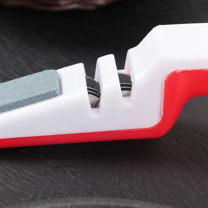 Габариты: 26 x 8 x 3 Страна: Китай В боксе: 144 шт Состав: Абразив, нержавеющая сталь, пластик Материалы: абразив, нержавеющая сталь, пластик Фасовка: по 1 шт Индивидуальная упаковка: Блистер Габариты товара: 19,5 см × 2,5 см × 19 см Сертификат: Не подлежит сертификации Набор: Нет Цвет: МИКС Количество этапов заточки: 2 Материал: Пластик, Металл, Абразив Вид: Механическая ножеточка Острые ножи – залог кулинарных шедевров и удовольствия от использования! По рекомендациям шеф-поваров, ножи, которые вы используете часто, нужно точить раз в неделю, остальные — раз в месяц. Есть 3 вида затачивающих инструментов: мусат, абразивный брусок или камень, механическая ножеточка. Выбирайте удобный вариант и сохраняйте долговечность любимым ножам и ножницам. Преимущества точилки: