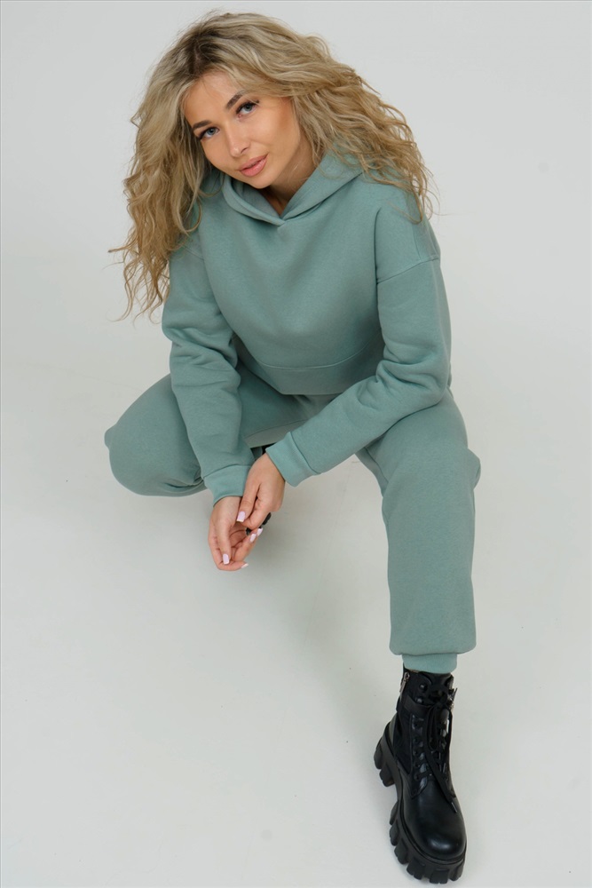Модная женская толстовка в стиле oversize выполнена из футера 3-х нитки с начёсом - это самый плотный и тёплый вид трикотажа. Данный вид футера имеет множество достоинств: натуральный состав, теплорегуляция, гипоаллергенность, прочность и формоустойчивость (при правильном уходе и стирке 30-40 С). На полочке толстовки имеется современный и удобный накладной карман. Манжеты выполнены из качественного кашкорсе. Линия плеча спущена. Длина рукава указана от точки основания шеи. При носке плотный начёс костюма приминается и может оставлять следы на одежде, образовывая катышки, это проходит после 1-2 стирки.