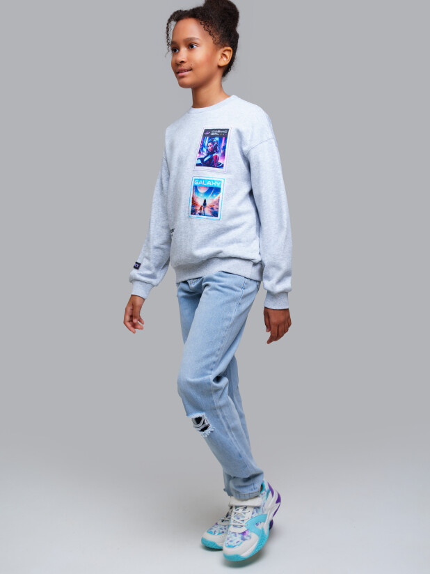 Свитшот для девочки подростка. Оверсайз толстовка с высоким содержанием хлопка. Трикотажные манжеты. Модель выполнена из качественного и приятного на ощупь трикотажа.