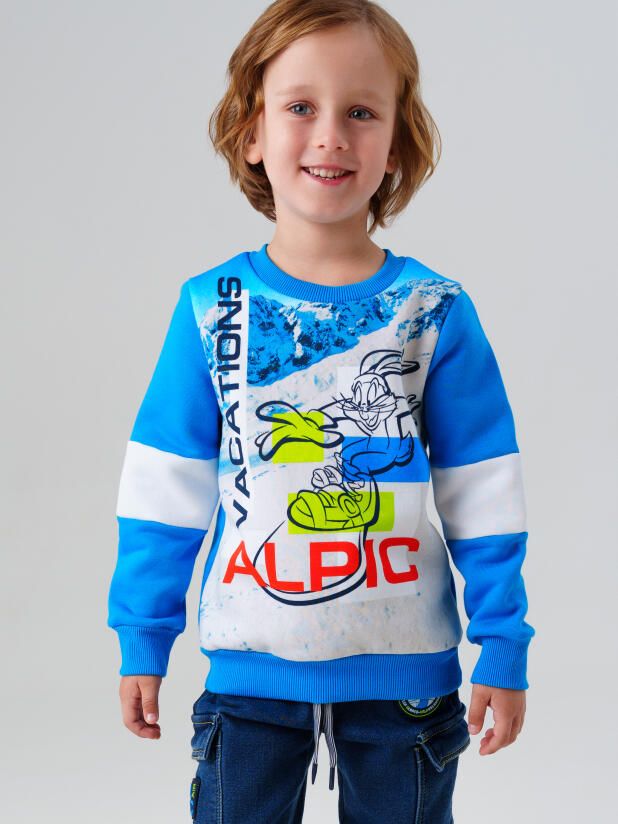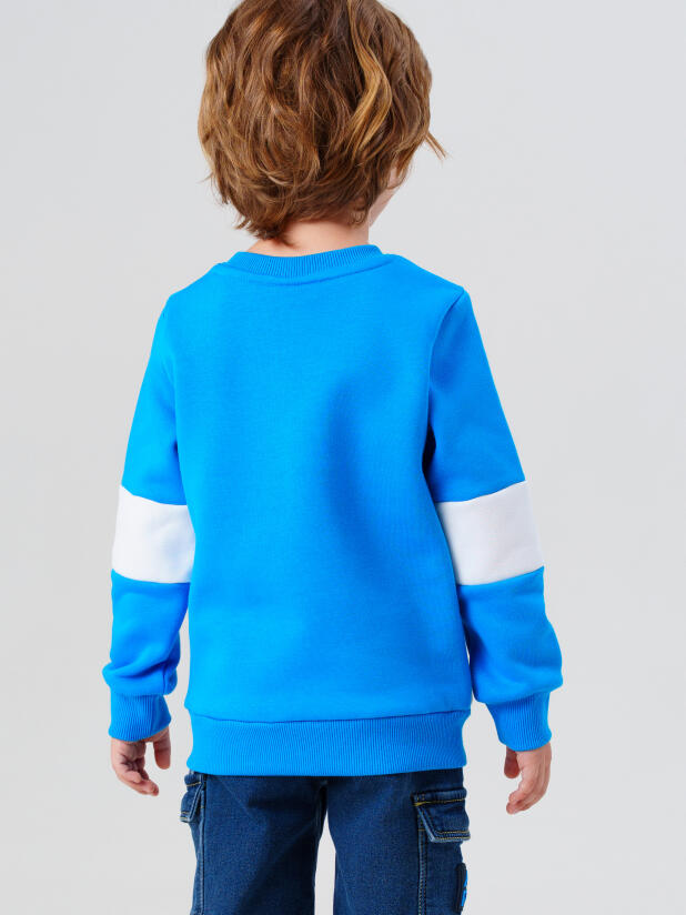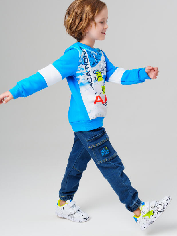 Детская синяя толстовка из футера с начесом для мальчика от PlayToday — стильная и удобная вещь, созданная для детского сада, прогулок и активных игр. Детская толстовка выполнена из мягкого футера с начёсом, который сохраняет тепло и комфорт в прохладную погоду. Яркий спортивный принт с надписями делает образ динамичным и современным.