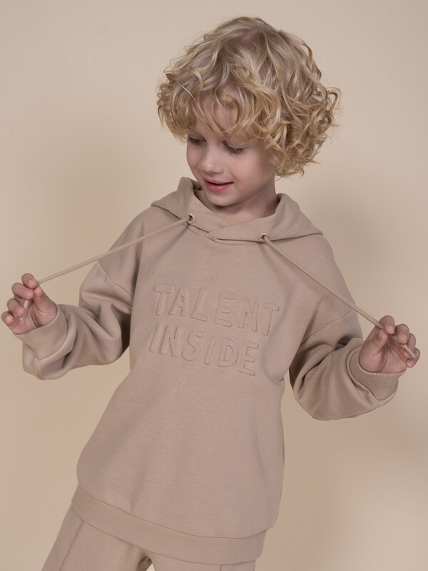 Состав: 87%хлопок 13%полиэстер Толстовка для мальчика свободного кроя – актуальная вещь в любом сезоне. Уютное худи для мальчика с капюшоном незаменимо дома и на прогулке. Трикотажная толстовка для мальчика подростка с капюшоном выполнена с высоким содержанием хлопка и добавлением в состав эластана. Приятный к телу материал отлично носится, не дает усадки, не линяет в процессе стирки и сохраняет красивый внешний вид. Хлопок хорошо пропускает воздух, наделяет необходимой гигроскопичностью – ребенок активно двигается, играет, не потеет. Детское худи для мальчика из материала футер-петля. Изделие свободного кроя оверсайз со спущенным плечом, углубленной проймой. Рукава и низ на манжете из риба. Капюшон на запахе, с люверсами и шнурками для регулировки. Изделие выполнено в однотонном цвете на выбор: бежевый, черный, зеленый. Худи для мальчика подростка оверсайз спереди декорировано выпуклым пресс-принтом: "Talent inside" - перевод "Талант внутри". Толстовка оверсайз рассчитана на возраст садика и школы. Понравится как малышам, так и школьникам и подросткам. Размерная линейка: 1 (86); 2 (92); 3 (98); 4 (104); 5 (110); 6 (116); 7 (122); 8 (128); 9 (134); 10 (140); 11 (146). Худи для мальчика - отличный подарок для сына, внука, братика, племянника, крестника! Выбирайте нужный размер по таблице размеров на фото. Цвет товара на экране вашего устройства может отличаться от цвета изделия вживую. Комментарии к товару