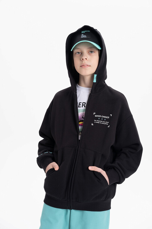 Состав: 87%хлопок 13%полиэстер Трикотажный бомбер для мальчика. Модель выполнена из плотного футера-петля. Изделие прямого силуэта, объем оверсайз. Манжеты рукавов и низ толстовки выполнены и рибаны. По переду накладные карманы. На спине принт с надписью. Перевод надписи: "easy" - легко. Спереди высокий резиновый текстовый принт и нашивка. Перевод надписей "Good choice! The character you chose is ready to everything" - хороший выбор! Выбранный персонаж готов ко всему. Рукава тоже декорированы принтом с надписью "digital" - диджитал. На капюшоне предусмотрена регулировка объема утяжкой. Зипка застегивается на молнию. Кофта спортивная имеет широкий размерный ряд, который подойдет как малышам так и подросткам. Подходит для круглогодичного ношения весной, летом, осенью и зимой. Комментарии к товару