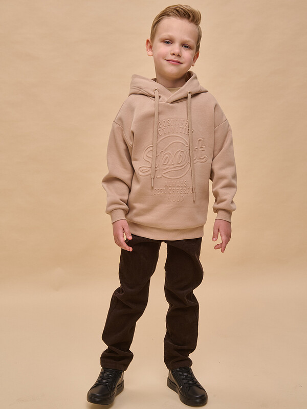Толстовка детская из футера с начёсом для мальчика. Худи трендового оверсайз-силуэта со спущенным плечом подарит ребёнку комфорт и не будет стеснять его движений. Толстовка с капюшоном защитит от холода и ветра. Модель дополнена манжетами из эластичной рибаны по низу и рукавам. Рибана не растягивается и надолго сохраняет отличный внешний вид. Изделие неприхотливо в уходе. Толстовка на мальчика выполнена из ткани с высоким содержанием хлопка — модель мягкая, воздухопроницаемая и гипоаллергенная. Благодаря полиэстеру худи износостойкое, сохраняет форму даже после множества стирок. Изделие выполнено в универсальной расцветке, без проблем сочетается с любыми брюками, джинсами. Отличное худи оверсайз для мальчиков дошкольного и младшего школьного возраста, а также подростков. Джемпер подходит для детского сада, прогулок, отдыха, дома. Худи с капюшоном для мальчика подходят для круглогодичной носки. Помните о правильном уходе за изделием: рекомендуется стирать при температуре не выше 30 °C, без предварительного замачивания, с изнанки. Это поможет сохранить качество и цвет толстовки на длительное время.