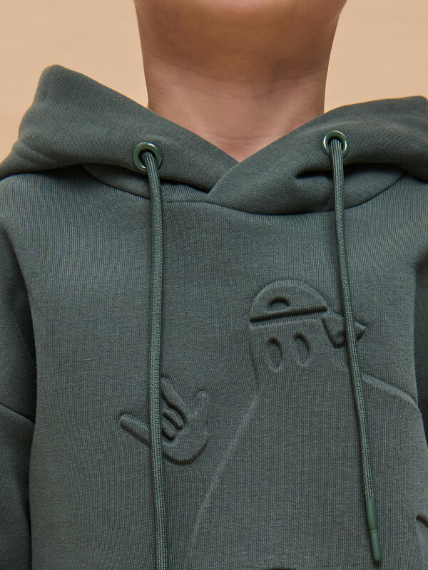 Толстовка детская из футера с начёсом для мальчика. Худи трендового оверсайз-силуэта со спущенным плечом подарит ребёнку комфорт и не будет стеснять его движений. Толстовка с капюшоном защитит от холода и ветра. Модель дополнена манжетами из эластичной рибаны по низу и рукавам. Рибана не растягивается и надолго сохраняет отличный внешний вид. Изделие неприхотливо в уходе. Толстовка на мальчика выполнена из ткани с высоким содержанием хлопка — модель приятная на ощупь, дышащая и гипоаллергенная. Благодаря полиэстеру худи износостойкое, сохраняет форму даже после множества стирок. Изделие выполнено в универсальной расцветке, легко комбинируется с любыми брюками, джинсами. Толстовка декорирована оригинальным выпуклым пресс-принтом в актуальном готическом стиле в виде забавного привидения, надпись переводится: «необычный». Отличное худи оверсайз для мальчиков дошкольного и младшего школьного возраста, а также подростков. Джемпер подходит для детского сада, прогулок, отдыха, дома. Худи с капюшоном для мальчика подходят для круглогодичной носки. Помните о правильном уходе за изделием: рекомендуется стирать при температуре не выше 30 °C, без предварительного замачивания, с изнанки. Это поможет сохранить качество и цвет толстовки на длительное время.
