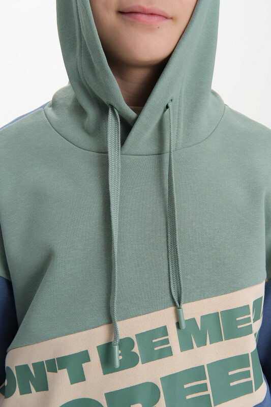 Худи для мальчика без начеса – актуальная вещь в любом сезоне, будь то весна, лето или осень. Кофта спортивная для мальчика выполнена из плотного футера-петля, который отлично согревает в прохладную погоду и при этом хорошо пропускает воздух – ребенок активно двигается, играет, не потеет. Толстовка свободного покроя оверсайз со спущенным плечом, углубленной проймой. Рукава а также низ изделия на манжете из рибаны. Кофта без карманов. Капюшон на запахе со шнурками для регулировки. Пайта для мальчика выполнена в трех цветах. По переду текстовый принт. Перевод принта "color the world in green" - раскрась мир в зеленый цвет. Размерный ряд подходит как для малышей так и для подростков.