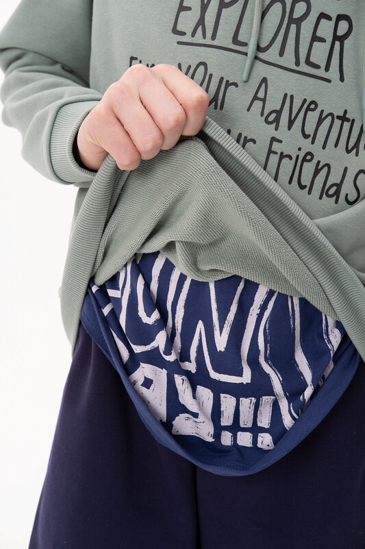 Худи для мальчика без начеса – актуальная вещь в любом сезоне, будь то весна, лето или осень. Кофта спортивная для мальчика выполнена из плотного футера-петля, который отлично согревает в прохладную погоду и при этом хорошо пропускает воздух – ребенок активно двигается, играет, не потеет. Толстовка свободного покроя оверсайз со спущенным плечом, углубленной проймой. Рукава а также низ изделия на манжете из рибаны. Кофта без карманов. Капюшон с регулировкой объема. По переду изделие украшено принтом с надписью и нашивкой. Перевод надписей "how to be an explorer: find your adventure, invite your friends, enjoy" - как стать исследователем: найди свое приключение, пригласи своих друзей, наслаждайся. Размерный ряд подходит как для малышей так и для подростков.