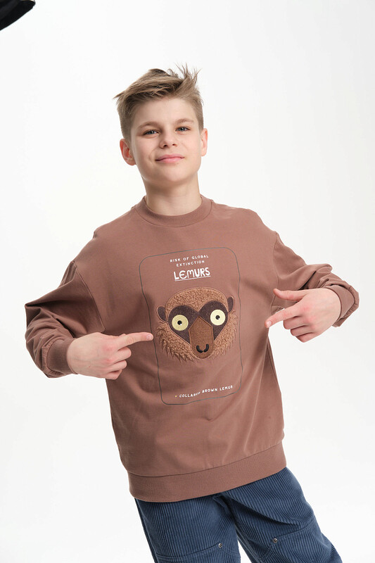 Состав: 100%хлопок Свитшот без начеса из материала футер-петля. Манжеты и низ изделия из рибаны. Толстовка весенняя украшена аппликацией из бербер-флиса (он же тедди-флис, барашек, чебурашка), а также надписью. Перевод надписи: "risk of the global extinction lemurs" - риск глобального вымирания лемуры, "collared brown lemur" - ошейниковый коричневый лемур. В составе ткани преобладает высококачественый хлопок — спортивная кофта приятна на ощупь и прекрасно пропускает воздух. Тонкую кофту можно носить круглый год. Широкая размерная сетка подойдет как для малыша так и для подростка. Комментарии к товару