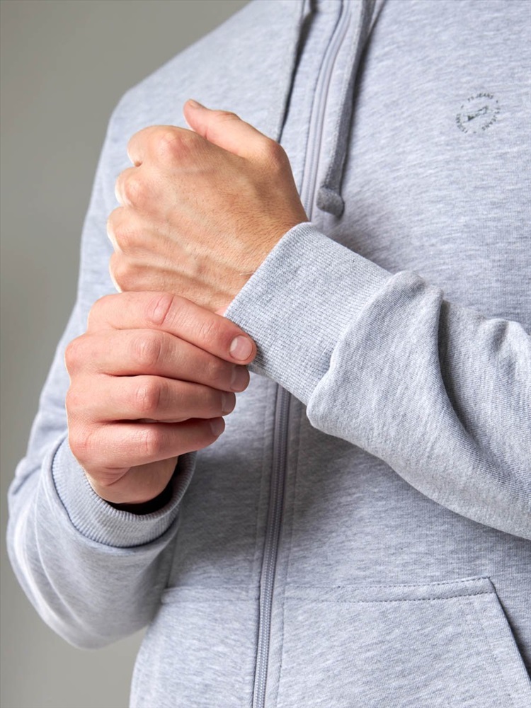 Классическая толстовка на молнии, выполнена из хлопкового полотна с добавлением полиэстера. Мягкая и приятная на ощупь, обладает хорошей гигроскопичностью, позволяет коже дышать. Модель с капюшоном и длинными рукавами не сковывает движений, обеспечивая комфорт. Объем капюшона регулируется при помощи шнура. Манжеты рукавов и низ толстовки оснащены эластичными резинками. Спереди толстовка дополнена карманом "кенгуру".