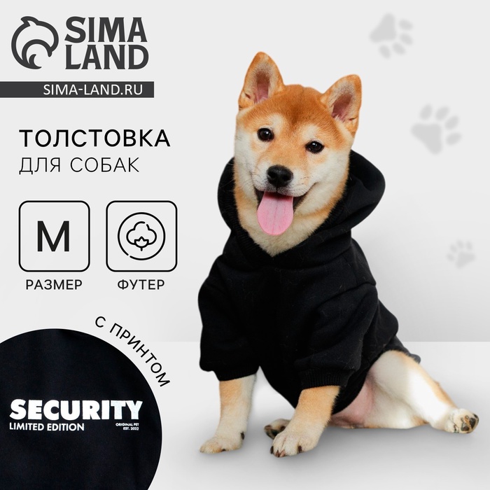 Толстовка Security для собак (футер), размер M (ДС 26, ОШ 36-38, ОГ 46-50), чёрная