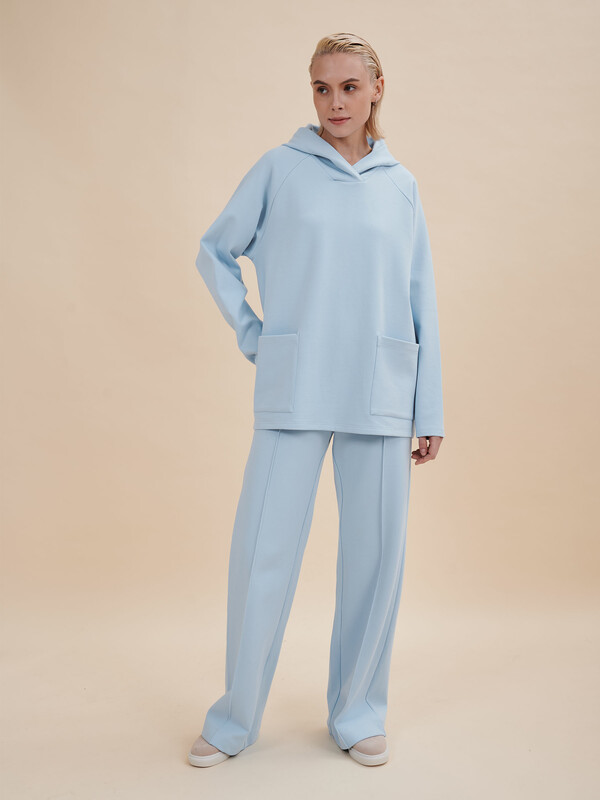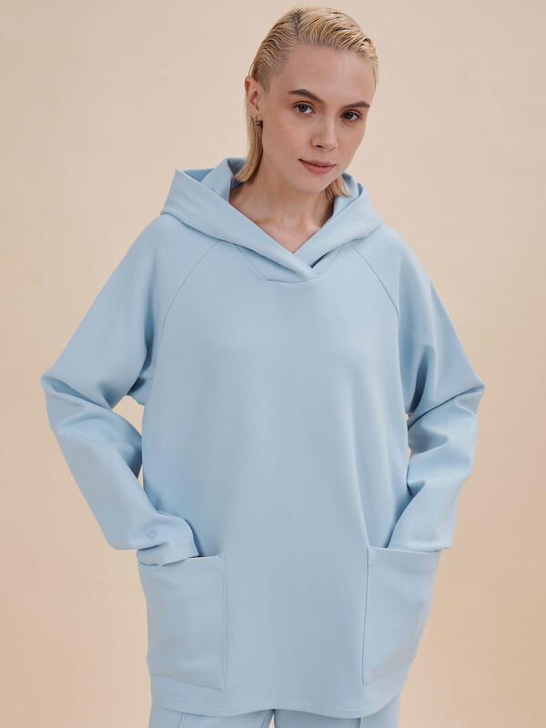 Стильная женская толстовка с капюшоном. Худи модного оверсайз-силуэта с рукавами кроя реглан подарит вам комфорт и свободу движений. Модель слегка расклешена книзу, её украшает оригинальная форма горловины. По переду два удобных накладных кармана — они придают изделию завершённый вид, в них можно положить необходимые мелочи. Женское худи выполнено из гладкой и тактильно приятной ткани, которая при этом держит форму. В составе ткани преобладает высококачественный хлопок — худи приятно на ощупь и великолепно пропускает воздух, давая коже дышать. Благодаря эластану толстовка сохраняет отличную форму в течение продолжительного времени. Толстовка однотонная, без принта, неприхотлива в уходе. Джемпер представлен в нескольких цветах: чёрном, голубом, синем, зелёном, белом. Его просто комбинировать с любыми брюками, леггинсами, джинсами. Размерная линейка: XS (42), S (44), M (46), L (48), XL (50). Худи подходит как женщинам, так и девушкам, девочкам-подросткам. Такой джемпер можно носить на работу, учёбу, на прогулки, на отдыхе и дома. Толстовка с капюшоном оверсайз подходит для круглогодичного применения: летом, осенью, зимой, весной и демисезон. Худи удлиненное — это чудесный подарок маме, подруге или сестре на любой праздник. Выбирайте нужный размер по таблице размеров на фото. Цвет товара на экране вашего устройства может отличаться от цвета изделия вживую.