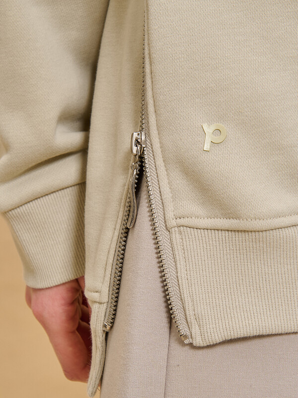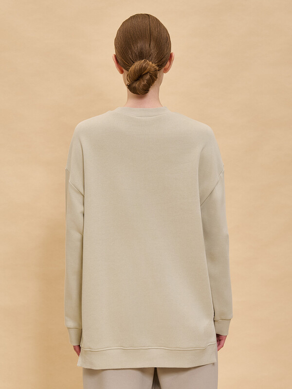 Свитшот женский без начеса. Толстовка расслабленного силуэта-кокон со спущенным плечом подарит вам комфорт и станет стильным дополнением гардероба. Спинка джемпера длиннее переда  — актуальный модный тренд. Манжеты, отделка горловины и низа изделия выполнены из эластичной широкой рибаны (ткани в рубчик). Она не растягивается, отлично сохраняет форму, при этом свитшот удобно надевать и снимать. Модель неприхотлива в уходе. Оверсайз свитшот  выполнен из плотного и приятного на ощупь футера — в составе ткани преобладает высококачественный хлопок, ткань дышит. Полиэстер помогает сохранить цвет и первозданный внешний вид надолго. Женский свитшот выполнен в универсальных цветах, который легко сочетать с любыми брюками, джинсами, юбками, платьями — можно создать много красивых образов. Толстовка декорирована небольшим объёмным принтом в виде первой буквы логотипа бренда. Стильная фишка модели — в боковых швах разрезы на металлических молниях. Однотонный оверсайз-свитшот — базовый элемент повседневного женского гардероба. Свитшот без начеса можно носить круглый год. Помните о правильном уходе за изделием: рекомендуется стирать при температуре не выше 30 °C, без предварительного замачивания, с изнанки. Это поможет сохранить качество и цвет свитшота на длительное время.