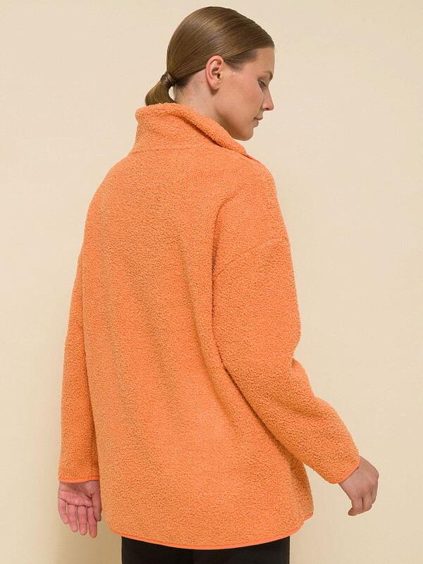 Женская толстовка-анорак из модного бербер-флиса (фактура «барашка»). Куртка свободного силуэта со спущенным плечом застёгивается на кнопки — легко застёгивать и расстёгивать. Декоративная отделка из гладкого «курточного» материала — один из актуальных трендов. В боковых швах удобные карманы. Толстовка без капюшона. Объёмный воротник можно носить двумя способами. Как воротник-стойку — защитит от холода и ветра. И как отложной воротник в более тёплую погоду. Пушистая толстовка лаконичного дизайна, без принта. Она проста в уходе: изделия из флиса прочные, легко стираются, не линяют, быстро сохнут и устойчивы к образованию катышков. Анорак из качественного флиса очень лёгкий, тёплый и прекрасно пропускает воздух. Куртка представлена в двух уютных цветах: оранжевом и молочном. Размерная линейка: XS (42); S (44); M (46); L (48); XL (50). Плюшевая толстовка подходит женщинам, девушкам, девочкам-подросткам. Идеальна как для высоких женщин, так и для девушек среднего роста. Анорак можно носить как куртку ранней осенью или поздней весной. Толстовка с воротником тёплая и мягкая. Объём позволяет надеть под низ футболку или водолазку. Флисовая толстовка — отличный выбор для прогулок и активного отдыха. Для круглогодичного применения: прохладным летом, осенью, зимой, весной и демисезон. Она станет стильным и практичным подарком подруге, дочери или сестре на Новый год или любой другой праздник.