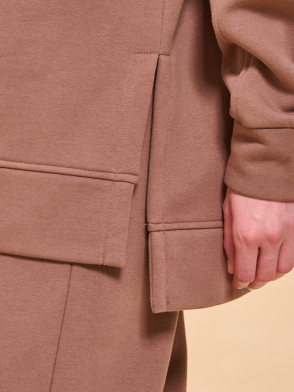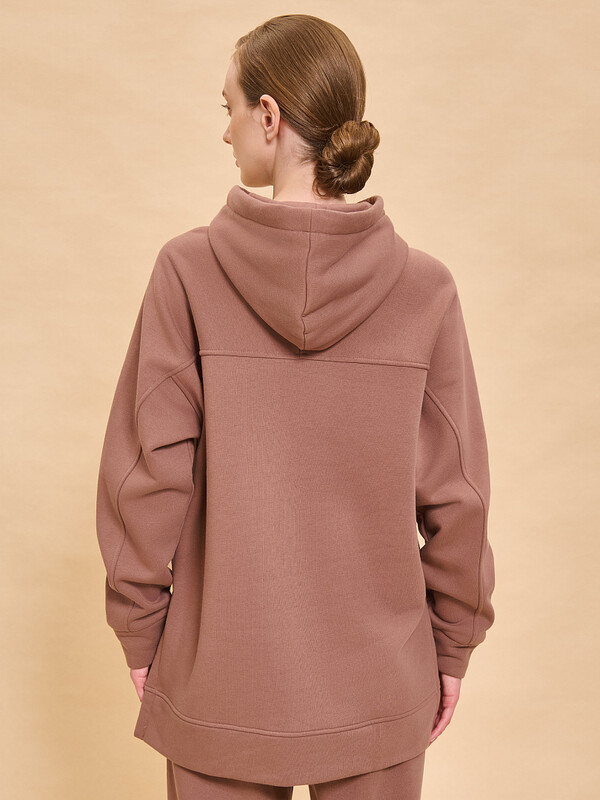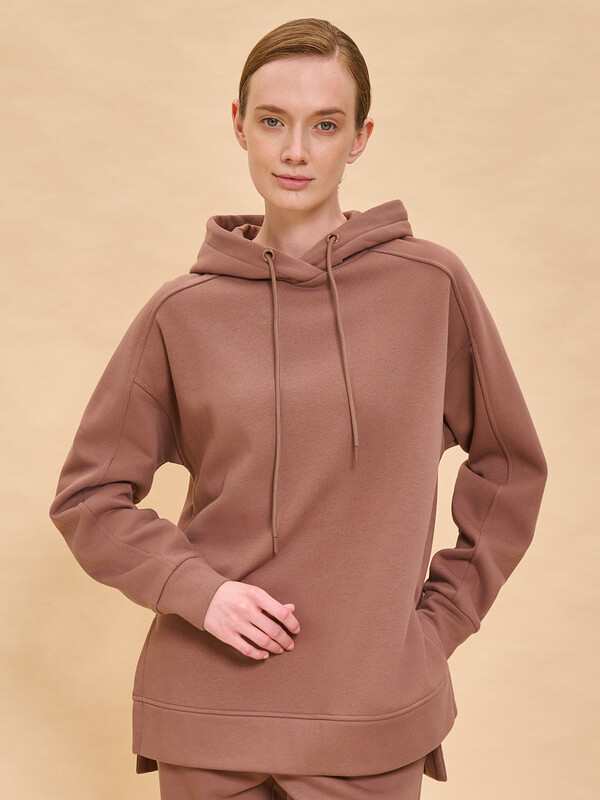 Худи женское с капюшоном. Комфортная толстовка свободного прямого силуэта подарит вам комфорт и станет стильным и уютным дополнением гардероба. Спинка худи длиннее переда, разрезы в боковых швах — актуальные тренды сезона. Манжеты и отделка низа из основной ткани. Интересная деталь — необычный, комбинированный крой рукавов. Капюшон с подкладкой из кулирной глади — смотрится аккуратно и хорошо держит форму. На капюшоне есть кулиска с крупными люверсами и шнурком из основной ткани — можно регулировать объём. Модель неприхотлива в уходе. Худи с капюшоном выполнено из мягкого футера с начёсом — в составе ткани преобладает высококачественный хлопок, ткань дышит. Полиэстер помогает сохранить цвет и первозданный внешний вид надолго. Женское худи выполнено в в универсальных цветах, которые легко сочетать с любыми брюками, джинсами — можно создать много стильных образов. Толстовка лаконичного дизайна, без принтов. Однотонное оверсайз худи — базовый элемент повседневного женского гардероба. Худи с начесом можно носить круглый год. Помните о правильном уходе за изделием: рекомендуется стирать при температуре не выше 30 °C, без предварительного замачивания, с изнанки. Это поможет сохранить качество и цвет худи на длительное время.