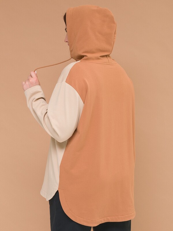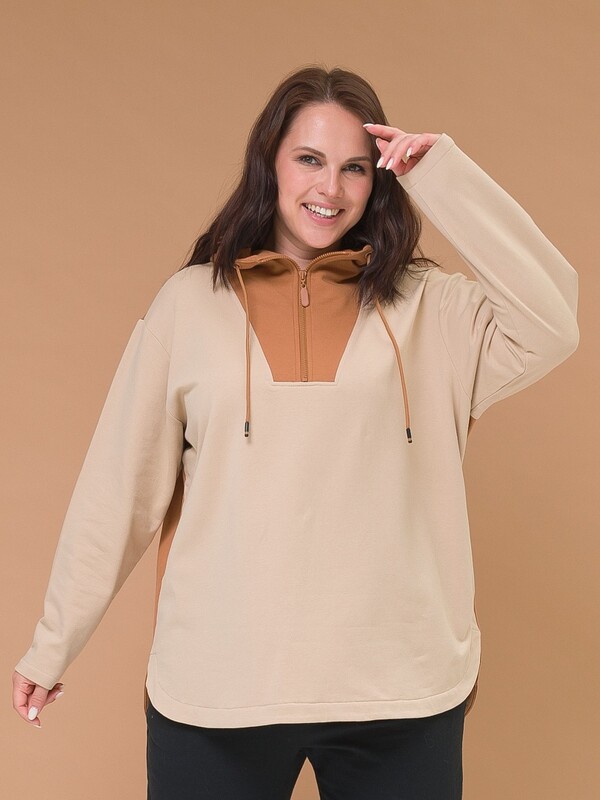 Женская толстовка худи оверсайз с капюшоном. Модная толстовка свободного силуэта стала обязательной частью современного женского гардероба. Это удобная базовая одежда для девушек и женщин из качественного трикотажного полотна согреет в любую погоду и подарит комфорт в движениях. Свитшот женский подойдет для любой фигуры. Толстовки женские без замка и молнии на всю длину, с встроенным коротким замком для удобства, можно надевать как самостоятельный элемент, также с ней хорошо сочетается верхняя одежда и спортивная одежда. Объемная и удлиненная сзади с декоративными круглыми разрезиками, утепленная толстовка худи с длинным широким рукавом, увеличенной проймой, и капюшоном на шнуре и без карманов будет стильно смотреться для повседневной носки на каждый день, для занятий спорта или просто для прогулок и холодных вечеров дома. Теплая кофта подарит уют и окутает теплом, это настоящий подарок для осени и зимы. В размерной сетке есть женские толстовки больших размеров.