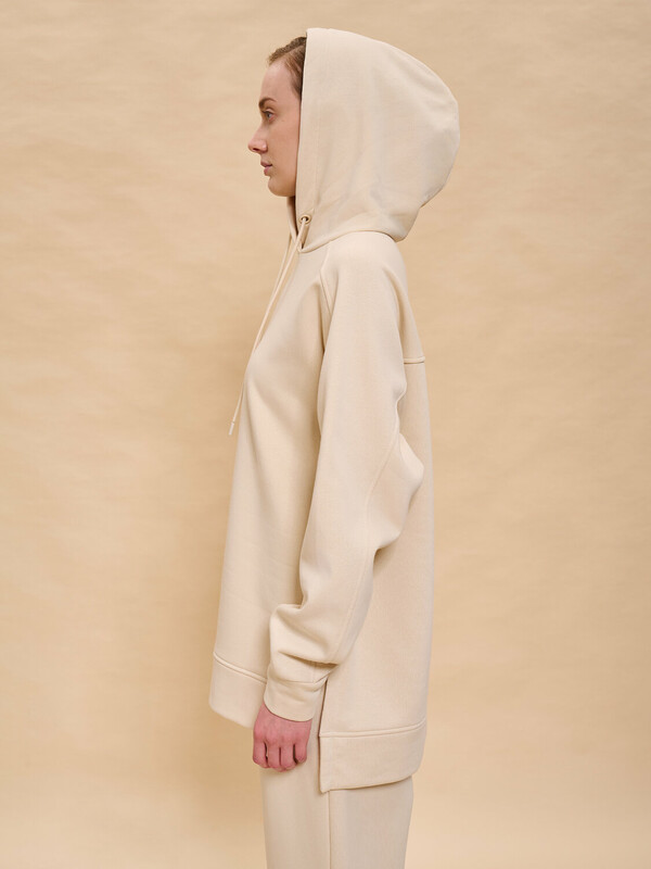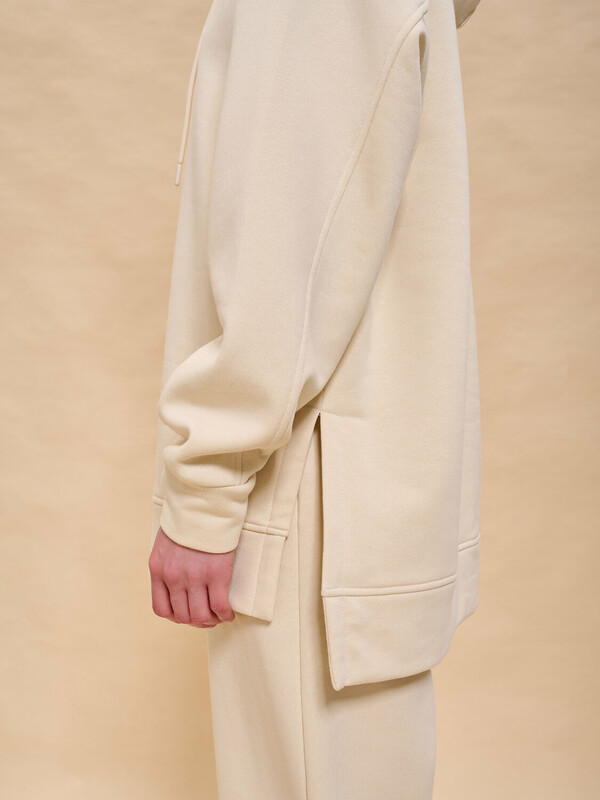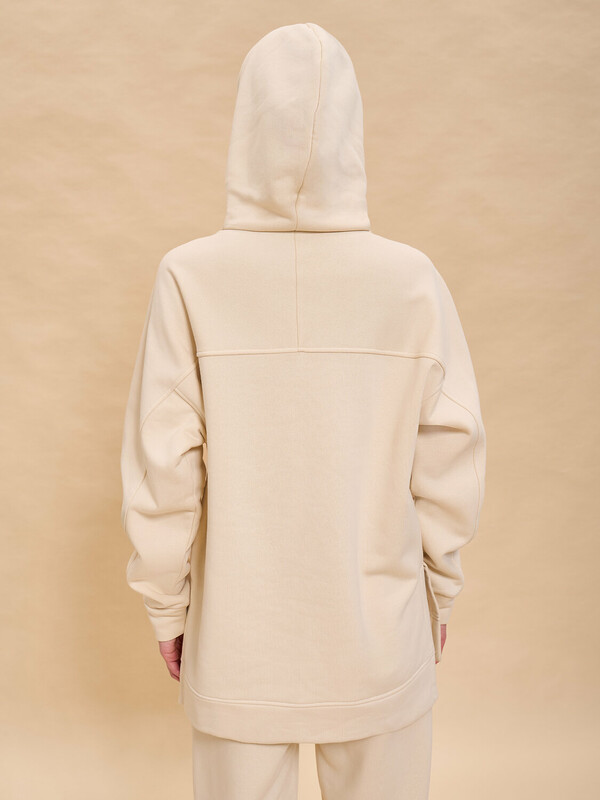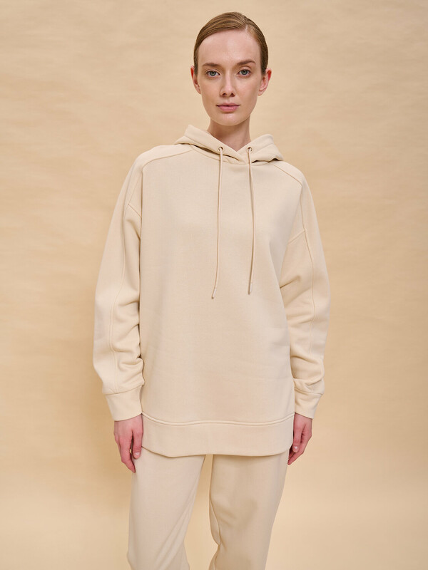 Худи женское с капюшоном. Комфортная толстовка свободного прямого силуэта подарит вам комфорт и станет стильным и уютным дополнением гардероба. Спинка худи длиннее переда, разрезы в боковых швах — актуальные тренды сезона. Манжеты и отделка низа из основной ткани. Интересная деталь — необычный, комбинированный крой рукавов. Капюшон с подкладкой из кулирной глади — смотрится аккуратно и хорошо держит форму. На капюшоне есть кулиска с крупными люверсами и шнурком из основной ткани — можно регулировать объём. Модель неприхотлива в уходе. Худи с капюшоном выполнено из мягкого футера с начёсом — в составе ткани преобладает высококачественный хлопок, ткань дышит. Полиэстер помогает сохранить цвет и первозданный внешний вид надолго. Женское худи выполнено в в универсальных цветах, которые легко сочетать с любыми брюками, джинсами — можно создать много стильных образов. Толстовка лаконичного дизайна, без принтов. Однотонное оверсайз худи — базовый элемент повседневного женского гардероба. Худи с начесом можно носить круглый год. Помните о правильном уходе за изделием: рекомендуется стирать при температуре не выше 30 °C, без предварительного замачивания, с изнанки. Это поможет сохранить качество и цвет худи на длительное время.