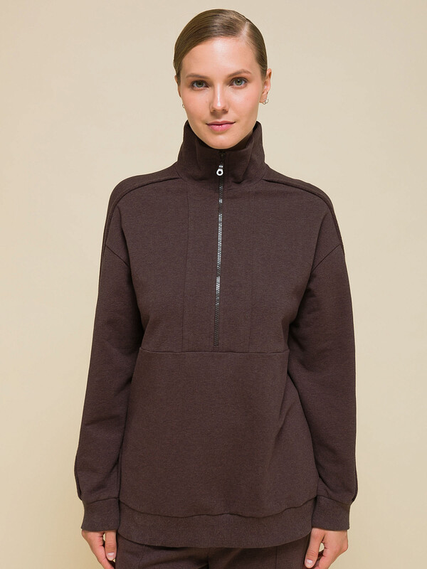 Женская толстовка на молнии без капюшона. Свитшот оверсайз-силуэта не будет стеснять ваших движений — вы чувствуете себя комфортно и свободно. Толстовка с молнией по горловине — актуальный тренд сезона. Толстовка с воротником-стойкой защищает шею от холода и ветра — нет необходимости дополнительно надевать шарф. Толстовка однотоннная, без принта. Неприхотлива в уходе. В составе ткани 100% высококачественного хлопка — изделие превосходно пропускает воздух и приятно на ощупь. Свитшот представлен в двух цветах: толстовка шоколадного цвета — более базовый и универсальный вариант. Розовая толстовка добавит яркости вашему повседневному образу. Вертикальные швы с необработанным краем на полочке и рукавах подчеркивают уникальность изделия и делают ваш образ запоминающимся. Размерный ряд: XS (42); S (44); M (46); L (48); XL (50). Свитер идеален для женщин, девушек, девочек-подростков. Его можно носить на учёбу, работу, отдых, прогулки, а также дома. Толстовка подходит для зимы, весны и осени (демисезон) и для прохладной погоды летом. Легко комбинируется с разнообразными брюками, джинсами, легинсами. Толстовка на замке — стильный и практичный подарок для сестры, подруги, мамы на Новый год или любой другой праздник.