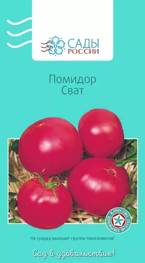 В Свата просто нельзя не влюбиться. На статном мощном индетерминантном кусте внушительно и авторитетно висят очень красивые, набитые мякотью плоды огромных размеров, а их необычайно сладкий и нежный, без кислинки вкус, попробовав раз, невозможно забыть. Розовые, светящиеся томаты так и просятся на стол. Прекрасно приспосабливается к любым условиям и дает стабильные урожаи. Формируют в один стебель. Имеет крепкий иммунитет к распространенным томатным возбудителям. Рекомендуется к свежему употреблению.