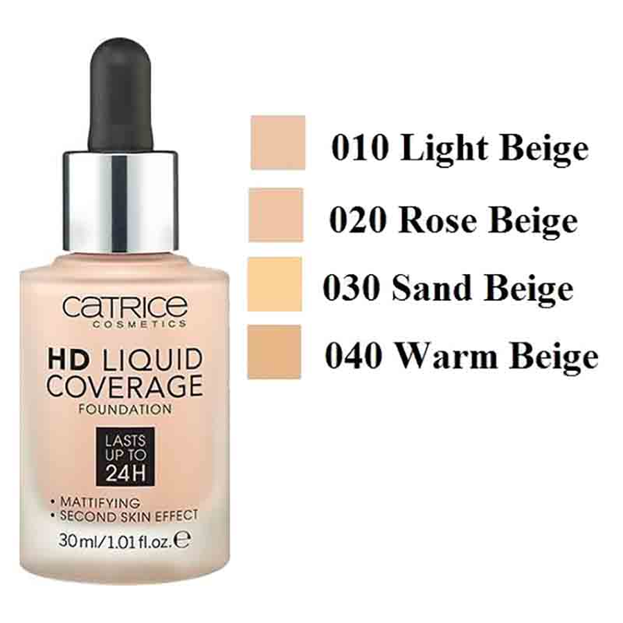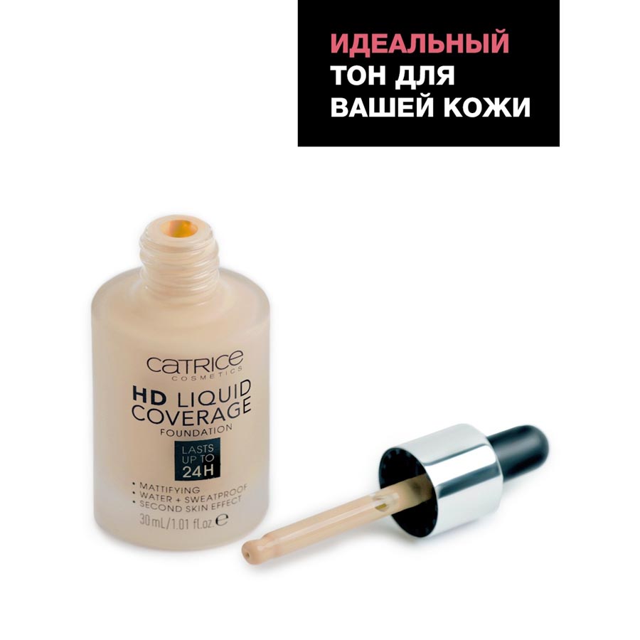 Тональная основа для лица HD Liquid Coverage Foundation от бренда Catrice - это легендарный тональный крем для любительниц макияжа. Тональный крем поможет создать безупречное покрытие с эффектом "второй кожи" и гладким матовым финишем. Пигментированная жидкая текстура тонального крема легко распределяется кистью или спонжем, отлично выравнивает тон с первого слоя и сливается с кожей, обеспечивая безупречную стойкость в течение дня. Практичный дозатор-пипетка у тонального крема позволяет нанести тональную основу непосредственно на кожу, тем самым контролируя расход средства. Тональный крем от CATRICE подходит для жирной и комбинированной кожи. Тональная основа обладает невесомой консистенцией. Тональный крем невидимой вуалью ложится на кожу, оставаясь незаметной для окружающих. Средство обладает водостойким эффектом со стойкостью до 24 часов.