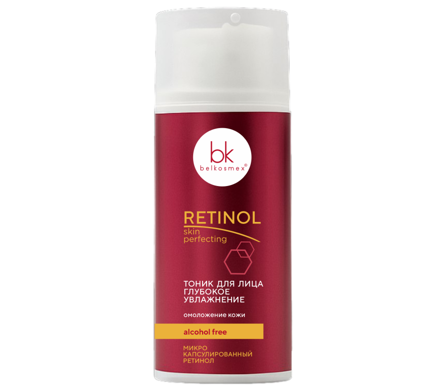 Бренд: Belkosmex; Время применения: Универсальный; Изготовитель: ПК ООО "Белкосмекс", Беларусь, 220072 г. Минск, ул. П. Бровки, 19-301; Серия: RETINOL Skin Perfecting; Тип кожи: Для всех типов; Упаковка: Флакон; Эффект: Регенерация, увлажнение