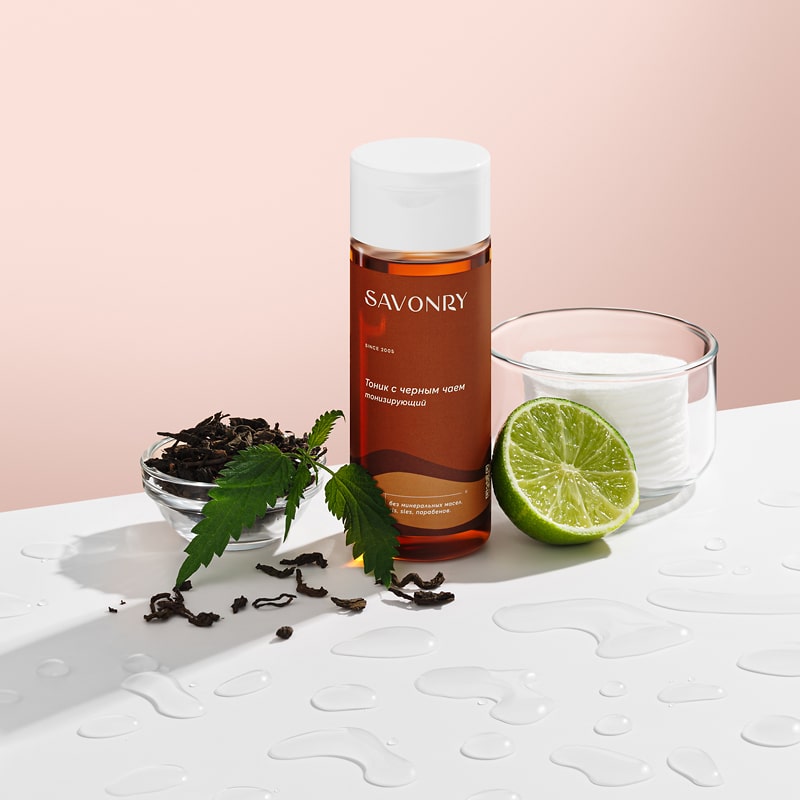 Тоник для лица с натуральным черным чаем, экстрактом крапивы, эфирным маслом лайма и протеинами пшеницы великолепно тонизирует и освежает кожу, увеличивает циркуляцию крови, улучшает цвет и тон лица. Протеины пшеницы обеспечивают питание и защиту поврежденных структур кожи, служат строительным материалом для восстановления ее клеток, образуют на поверхности невидимую пленочку, которая обеспечивает лифтинг-эффект.