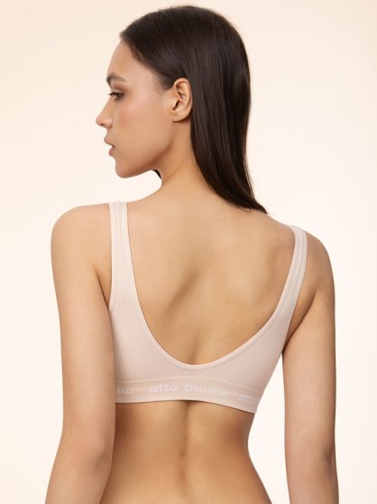 Производитель: Alla buone Оптовая продажа. Топ-бра женский из мягкой бесшовной микрофибры, в "рубчик", со съемными вкладышами, резинка с логотипом Alla Buone. Состав: Полиамид: 95% Эластан: 5%