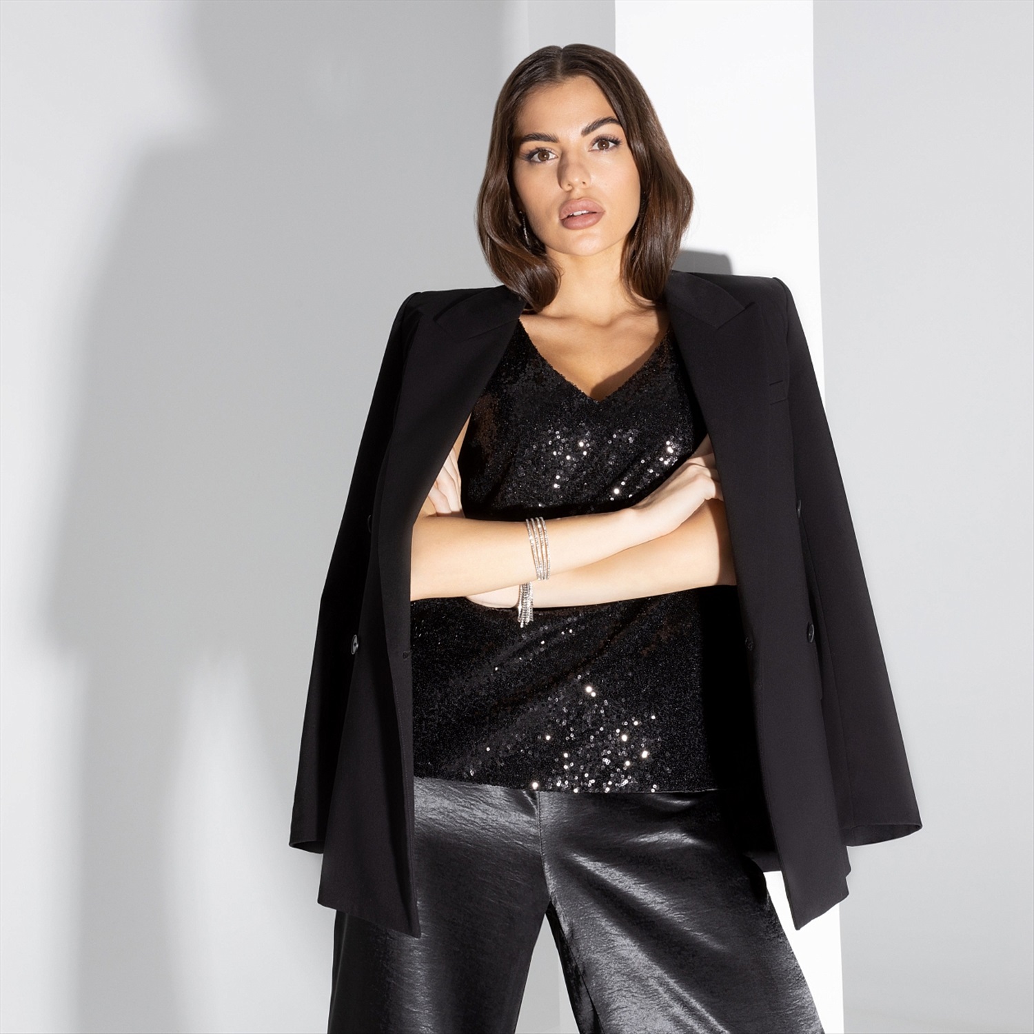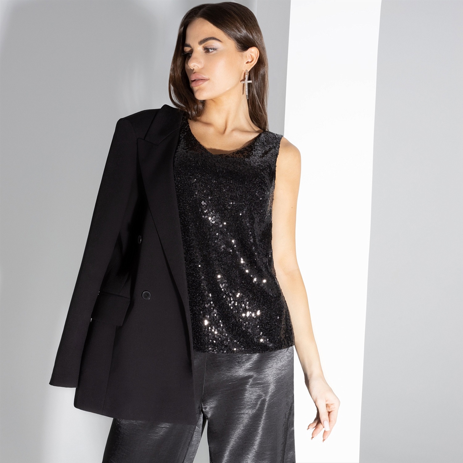 Идеальный выбор для стильной вечеринки или в офис. Пайетки не первый сезон появляются на Неделях моды в Нью-йорке, Милане. Миксуйте с брюками из экокожи или джинсами в свободном или строгом стиле. Блистайте!