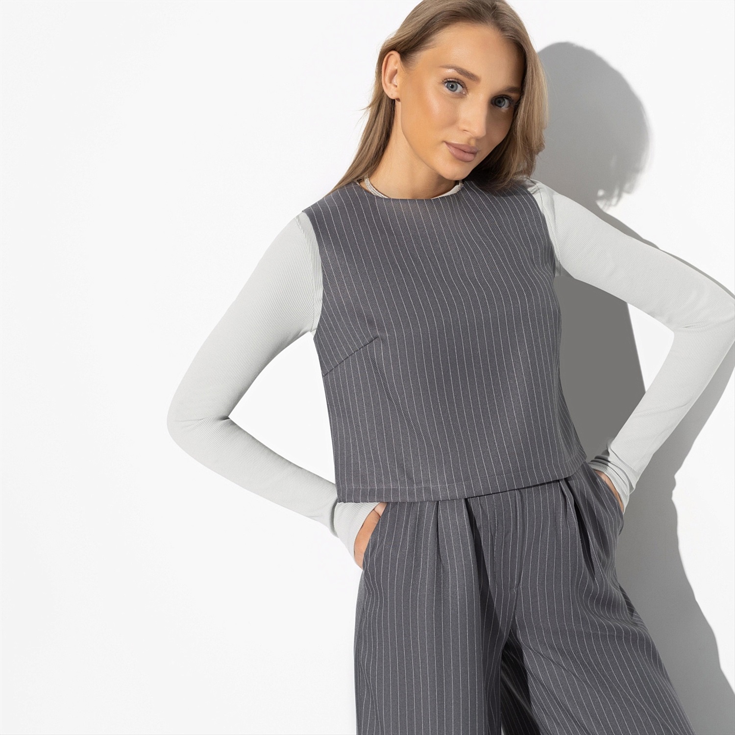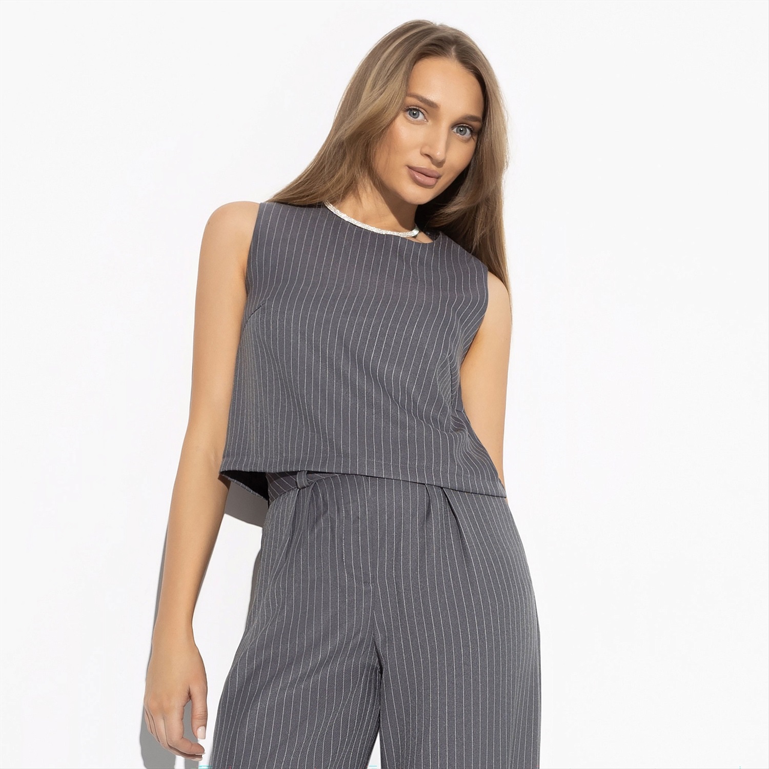 Этот топ «Иной смысл» — воплощение современного стиля и элегантности. Сделанный из высококачественной костюмной ткани, он подчеркивает ваш уникальный вкус и утонченный стиль. Трендовый принт в полоску придаст вашему образу свежесть и оригинальность, позволяя вам выделяться среди коллег. Этот топ — идеальный выбор для тех, кто стремится выглядеть стильно и профессионально в любой ситуации.