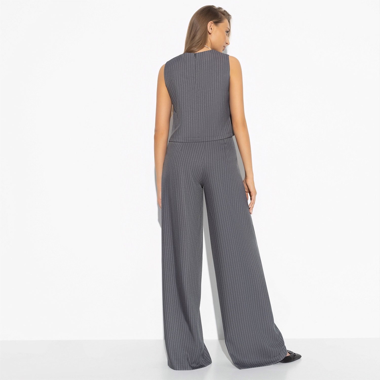 ТН ВЭД: 6206400000; Состав: «Костюмная ткань» (100% п/э); Плотность ткани: Тонкая; Тип ткани: Текстиль; Вид застежки: Молния; Карманы: Нет; Основной цвет ткани: Серый; Отрезная талия: Нет; Подклад: Нет; Резинка по талии: Нет; Рисунок/раппорт: Каждое изделие уникально из-за расположения рисунка на ткани; Сезон: Круглогодичный